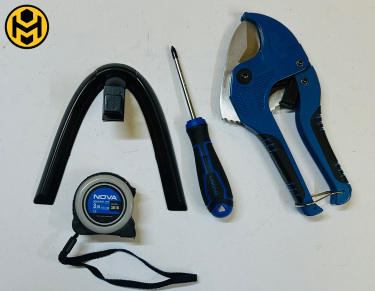 -دارای کیف فلزی، قیچی PVC بر، متر 3 متری، پیچ گوشتی 4 سو، 2 عدد آچار آلن و پایه آلومینیومی